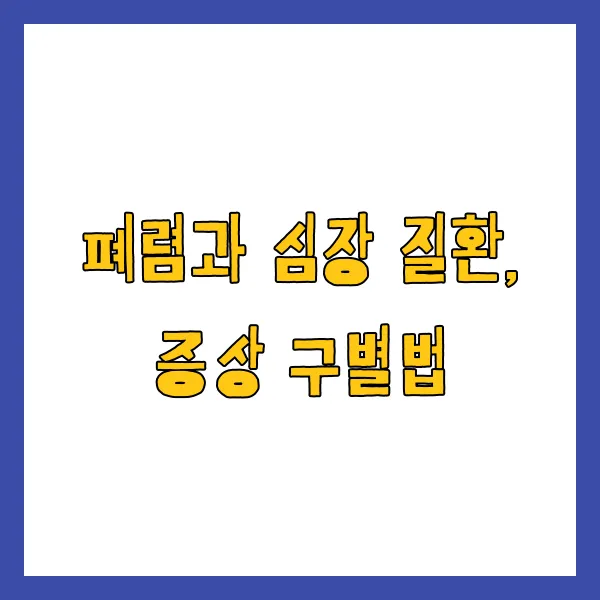 폐렴은 기침, 가래, 발열, 오한 등의 호흡기 증상을 동반하는 경우가 많습니다. 심장 질환은 호흡 곤란, 어지럼증, 식은땀 등의 증상이 나타날 수 있습니다. 하지만 폐렴 환자에게서도 호흡 곤란이 나타날 수 있고, 심장 질환 환자에게서도 기침이 동반될 수 있기 때문에, 증상만으로 두 질환을 구별하는 것은 매우 어렵습니다. 복합적인 증상을 고려해야 합니다.