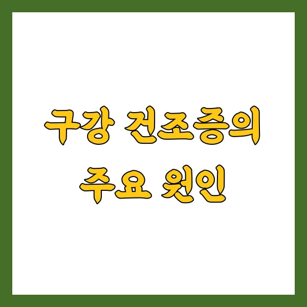 | 원인 | 약물 복용, 질병, 방사선 치료, 생활 습관 (흡연, 음주, 구강 호흡), 수분 섭취 부족 등 |