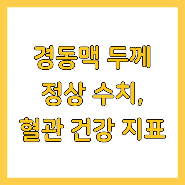 경동맥 두께와 더불어 혈압, 혈당, 총 콜레스테롤, LDL 콜레스테롤, HDL 콜레스테롤, 중성지방 수치 등을 함께 관리하는 것이 매우 중요합니다. 이 모든 지표들이 복합적으로 혈관 건강에 영향을 미치기 때문에 종합적인 관리가 필요해요! **키워드**: 경동맥 두께 정상 수치, 혈관 건강 지표, 동맥경화, 뇌졸중 예방, 심혈관 질환, 경동맥 초음파, IMT, 콜레스테롤 관리, 혈관 노화