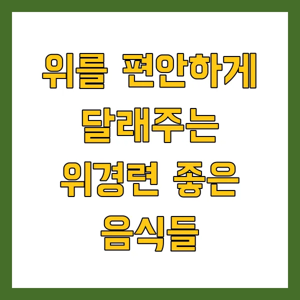 | 음식 | - 따뜻하고 부드러운 죽, 스프 - 바나나, 찐 양배추, 브로콜리 등 - 닭가슴살, 흰살생선, 두부, 달걀찜 - 소량의 통곡물 (죽, 오트밀 형태) - 플레인 요구르트, 발효 식품 (순한 것) - 위 보호에 좋은 캐모마일차, 생강차 등 |